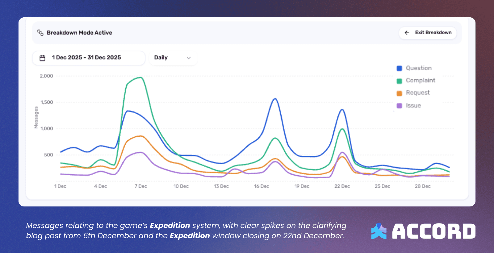 From 1 December to 31 December, Accord tracked more than 50,000 messages specifically relating to the Expedition system.