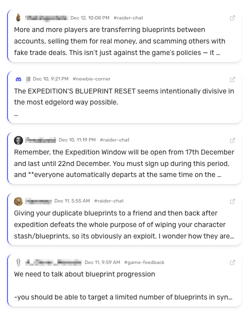 Analysis of ARC Raiders Discord messages sent 6–12 December shows us which sub-topics related to the Expedition were generating the highest volume of messages.