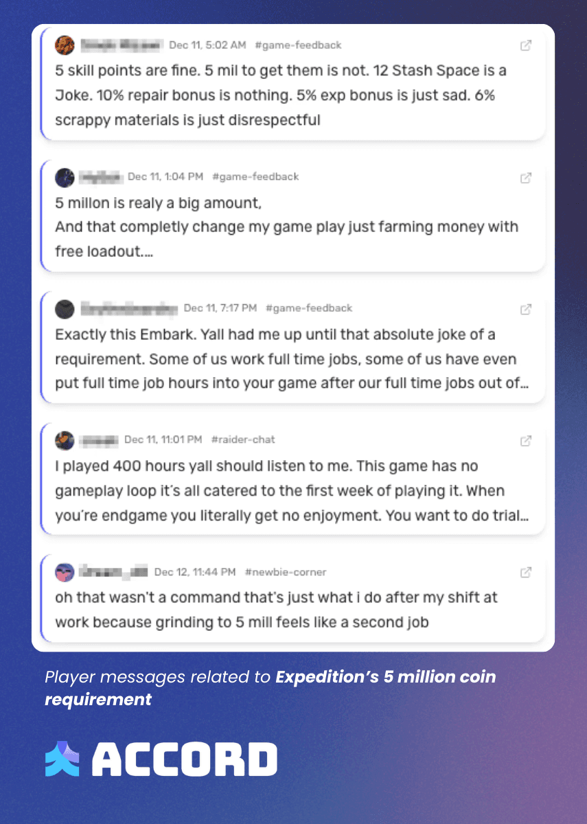 In the wake of major updates and game changes like this, listening to your community can be a great way of gathering feedback that can shape future system changes. Embark is listening as it’s already aware of the criticism around the five million stash value, but we used Accord to gather further suggestions on how future Expeditions could be improved.